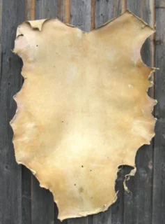 Du kannst zwischen verschiedenen Rohhäuten wählen. Zum einen kannst du Ziegenhaut für deine Trommel verwenden. Diese ist gut zu verarbeiten und etwas dünner, was sie bei der Verwendung im Außenbereich etwas empfindlicher macht. Eine Hirschhaut hingegen ist etwas dicker, damit in der Verarbeitung nicht so flexibel, aber auch etwas unempfindlicher gegen Kälte und Feuchtigkeit.